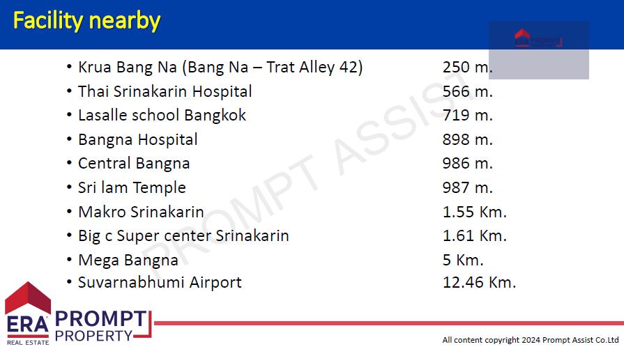 เดินทางสะดวก เชื่อมต่อ ถนนบางนา-ตราด, ถนนศรีนครินทร์ และวงแหวนกาญจนาฯ