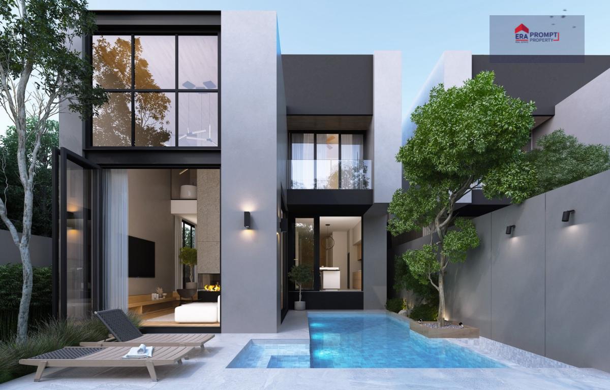 การออกแบบพลูวิลล่าสไตล์โมเดิร์น และตกแต่งสไตล์อบอุ่นและผ่อนคลายมีพื้นที่สีเขียวรอบบ้าน