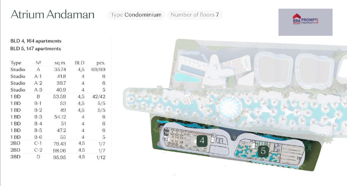 Unit Summary – Atrium Andaman City Phuket Condos (7-storey condominium)