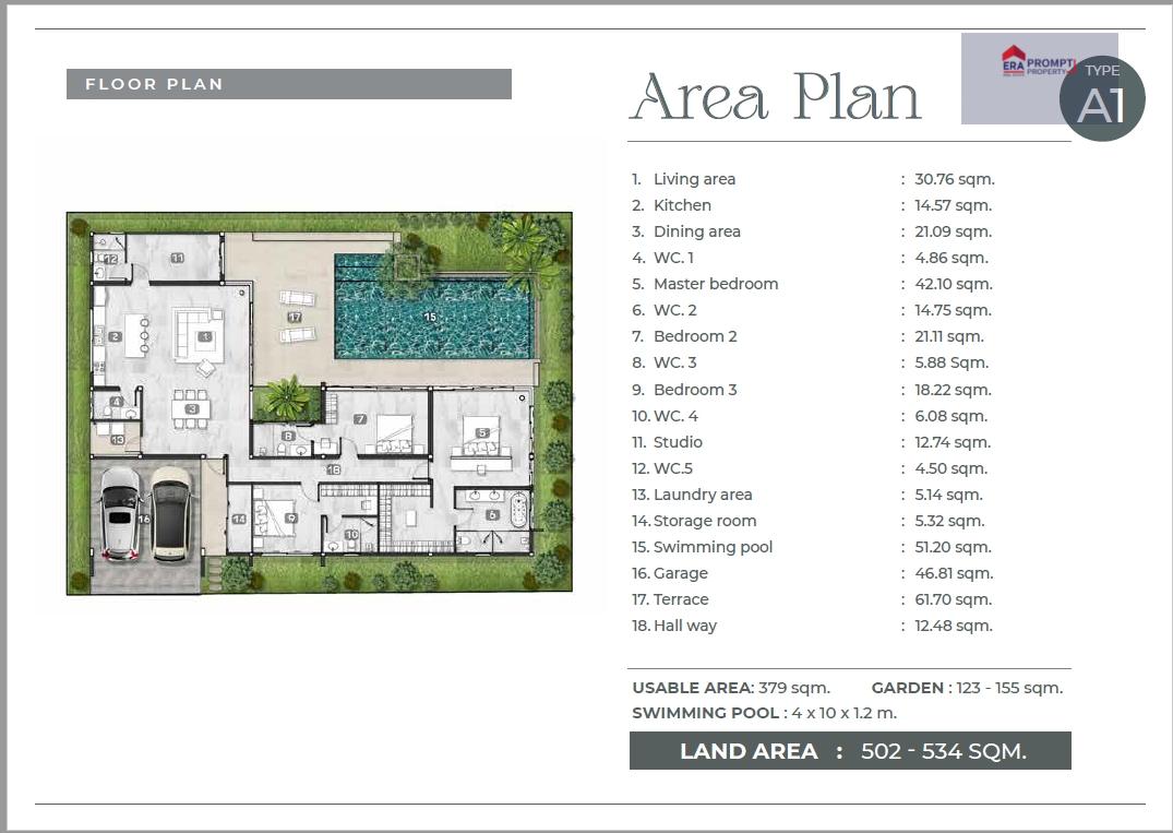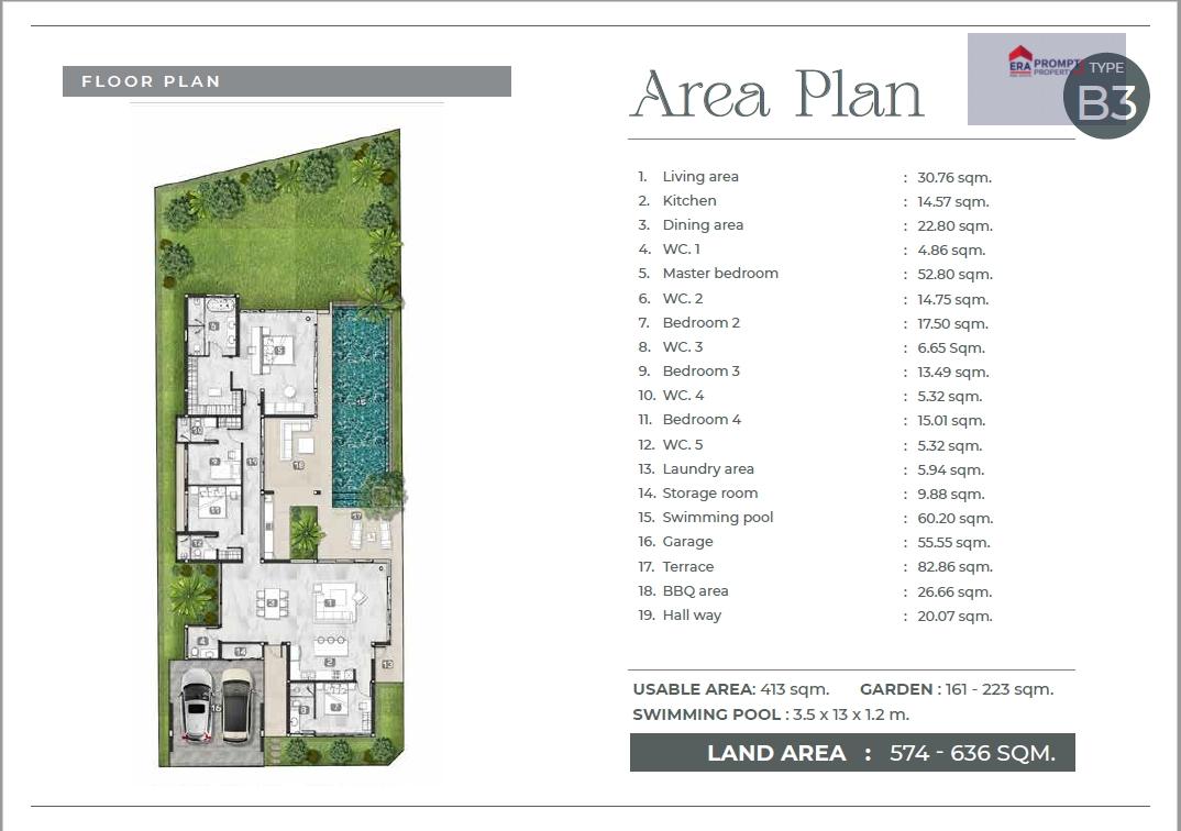 ขนาดพื้นที่ใช้สอย: 413–465 ตร.ม.
