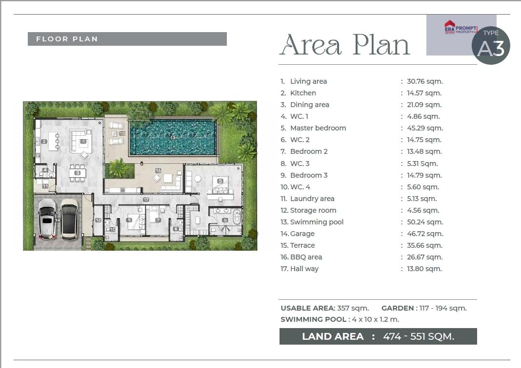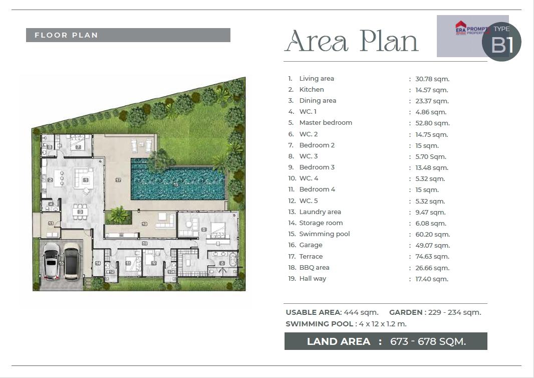 ขนาดพื้นที่ใช้สอย: 357–388 ตร.ม.