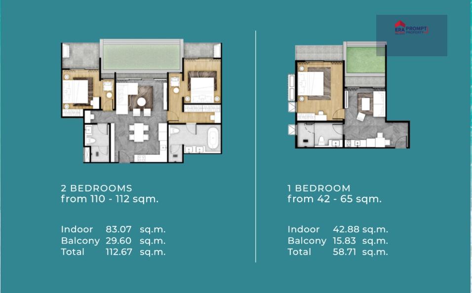 2 Bedrooms: Total 112.67 sq.m. (Indoor 83.07 sq.m. + Balcony 29.60 sq.m.)