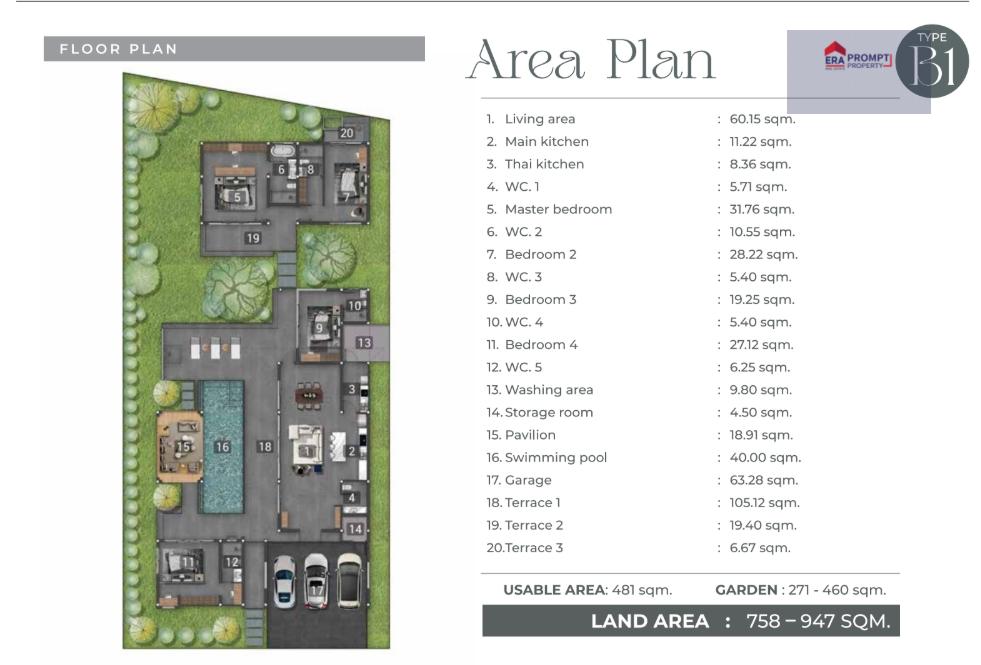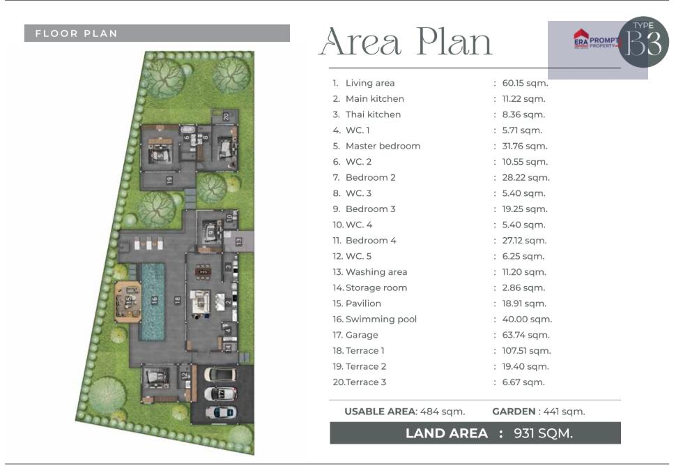 β’ 5-Bedroom Villa β Approx. 444 sqm usable area | 749 sqm land | 5 Bedrooms / 6 Bathrooms | Private pool