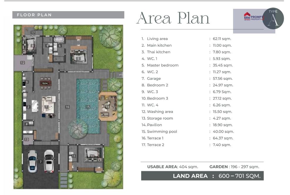 β’ 3-Bedroom Villa β Approx. 404 sqm usable area | 600 sqm land | 3 Bedrooms / 4 Bathrooms | Private pool