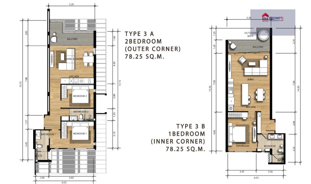 Type 4A β 2 Bedroom (Outer & Inner Corner)