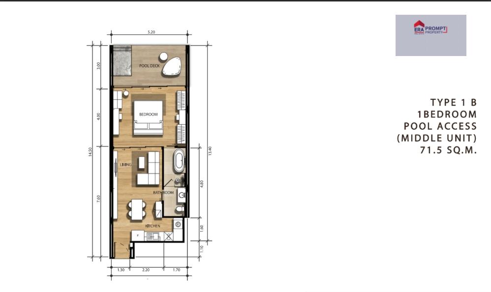 Type 2B β 1 Bedroom Junior (Middle Unit)