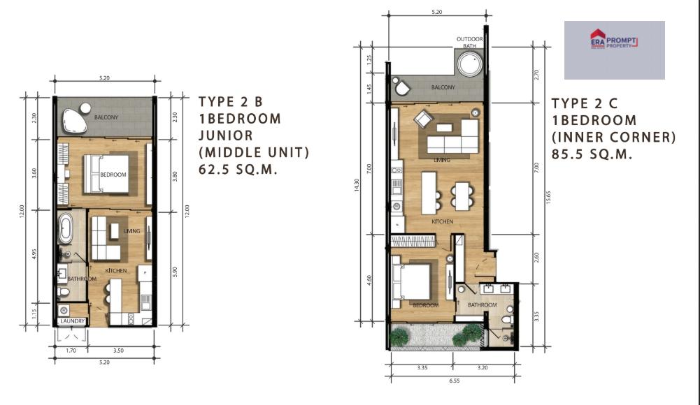 62.5 sqm | Mid-size unit perfect for singles or couples